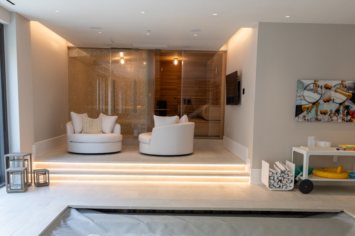 Kitchen, Family Room, Living Room, 10 Bathrooms, 5 Bedrooms, Game Room, Home Theater, Outdoor Kitchen, Play Room, Massage Room, Gym, Sauna, Walk-in Closets, Floating Staircase, Stairways & Railings